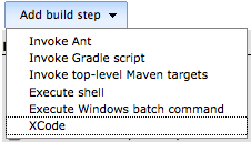 Now you have to add the special build step invoking the iOS build on the slave. After installing the XCode Integration Plugin as mentioned earlier you are now able to choose the option "XCode" from the "Add build step" list.