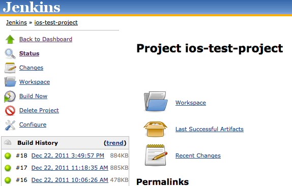 With this the iOS build job can be used in the exact same manner as all the other build jobs within the central Jenkins master instance. It's also possible to archive build artifacts so that ".ipa" files can be downloaded from Jenkins master. And, of course, it is possible to add the iOS build job to miscellaneous views.